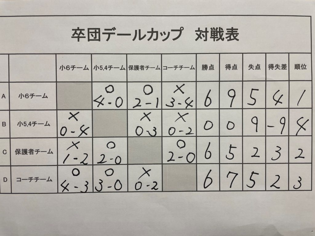 2022年3月22日(祝月)U-12所属の小6卒業を記念して、卒団デールカップ(親子フットサル大会)を開催しました。